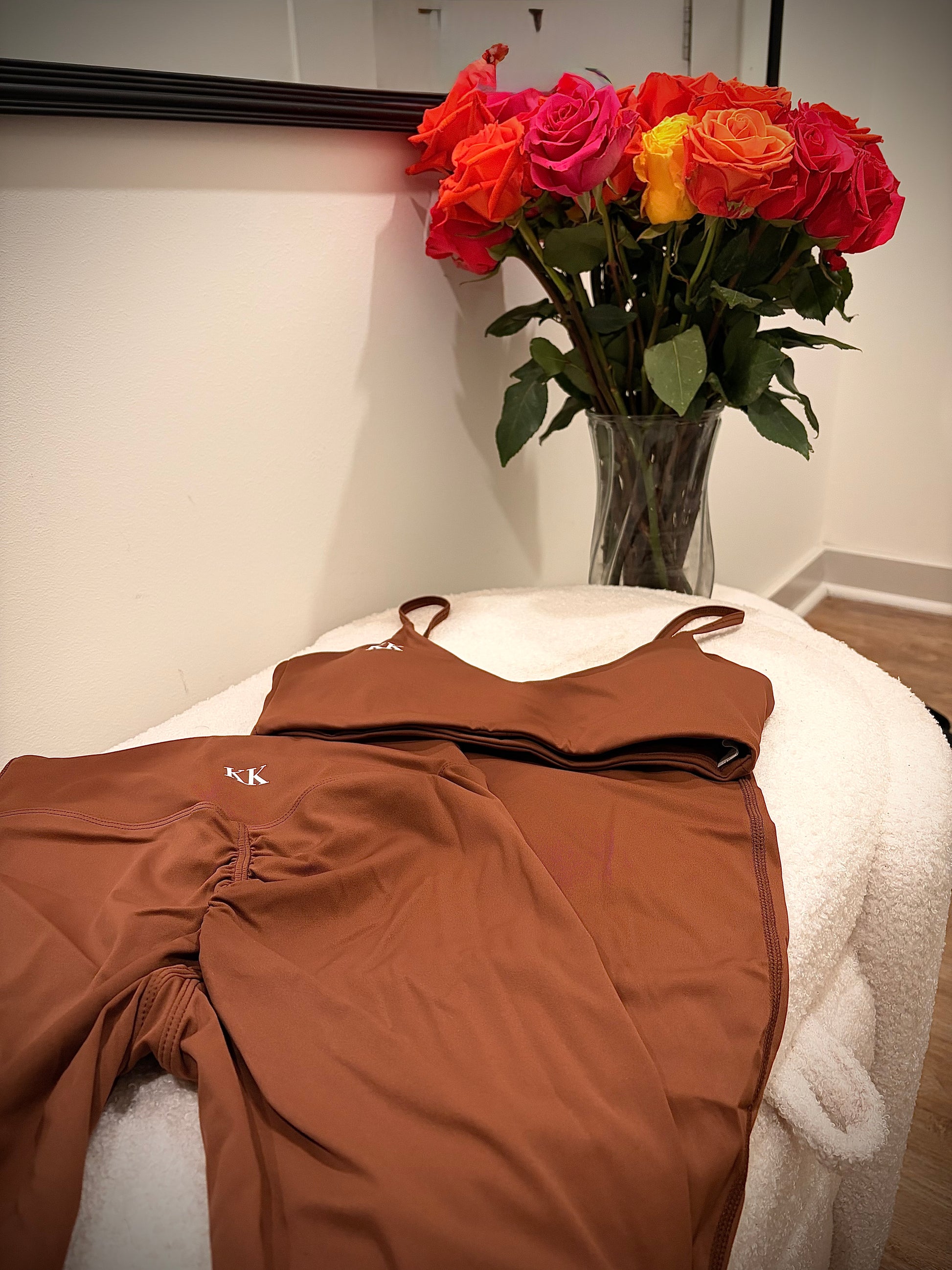 Scrunch butt flare leg pants, featuring V-cut in the front! 🤎